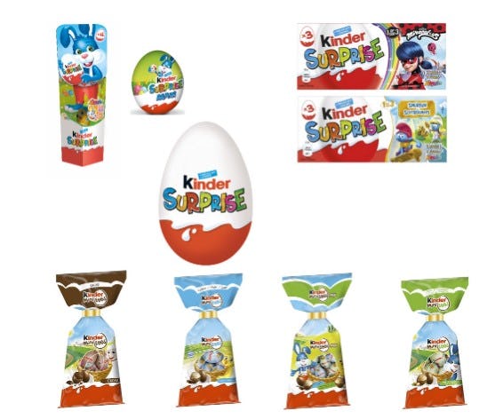 Naast Kinder Surprise gaat de terugroepactie om Schoko-Bons, Mini Eggs en de Maxi-variant van de chocolade-eieren met een plastic speelgoedje in het midden. Op de website van het FAVV staan alle betreffende Lotnummers en THT's uitvoerig vermeld. Het gaat om onderstaande producten op de foto.