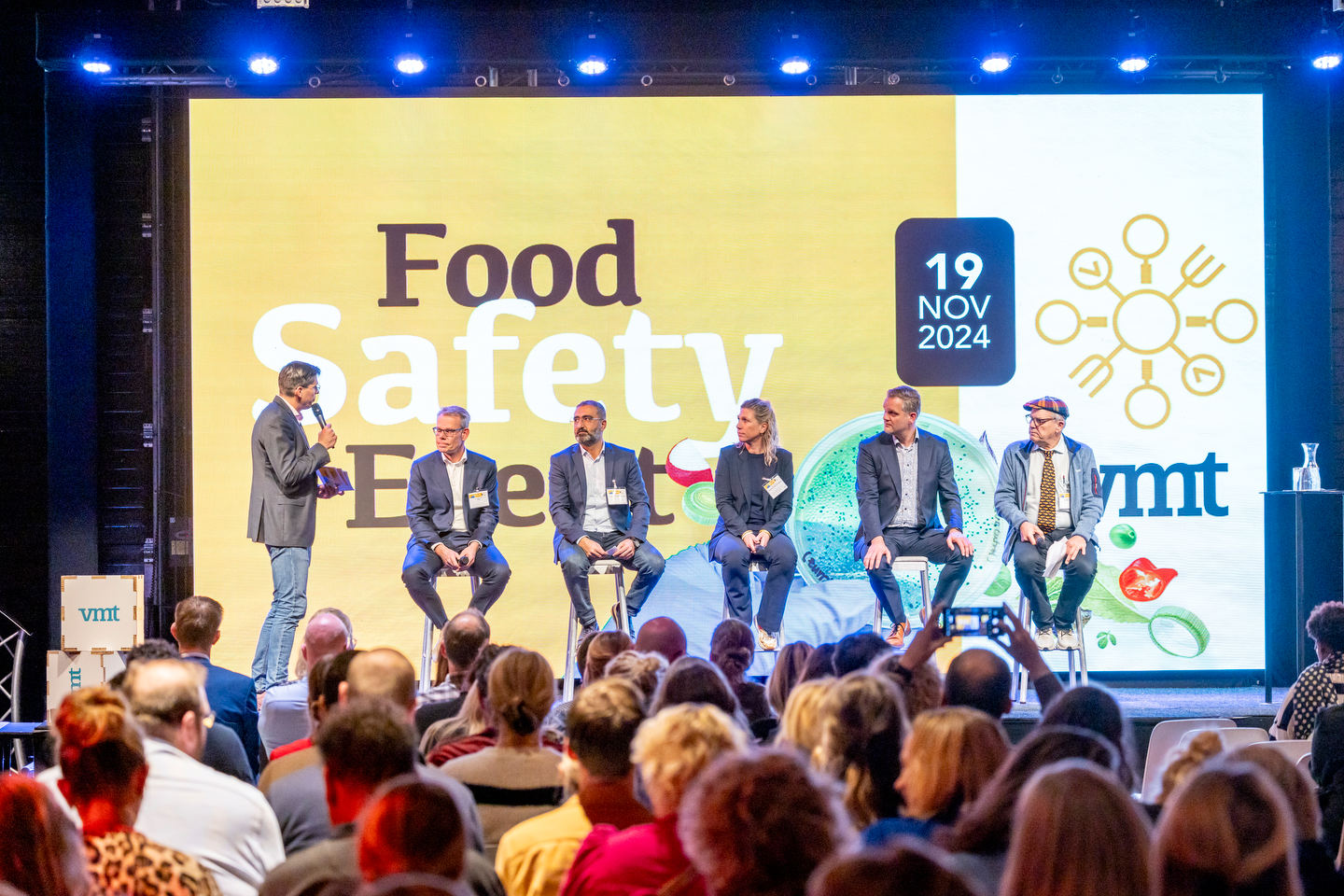 QA-professionals, kwaliteitsmanagers en experts op het gebied van voedselveiligheid kwamen naar het VMT Food Safety Event in Amersfoort; een dag waarbij professionals kennis en expertise delen. Na binnenkomst in de Rijtuigenloods trapte hoofdredacteur Willem Paul de Mooij samen met Didi de Koning de dag af. De eerste spreker was Dr. Marie-Ange Delen van het Ministerie van Landbouw, Visserij, Voedselzekerheid en Natuur (LVVN), die een lezing gaf over de Codex Alimentarius. Vervolgens sprak Bas van der Velden van Wageningen Food Safety Research (WFSR) over de toekomst van AI in de voedselketen. Hij ging in op het versnellen van microscopisch onderzoek en het analyseren van complexe microbiologische gegevens. Na de eerste plenaire sessies, was het tijd voor een kopje koffie.