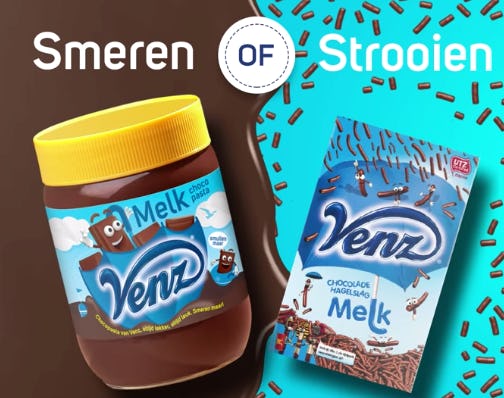 Venz, tot nu toe bekend van de hagelslag en vlokken, introduceert een eigen chocopasta. Daarmee breidt zij haar assortiment uit van enkel strooichocola naar strooichocola en chocopasta.
