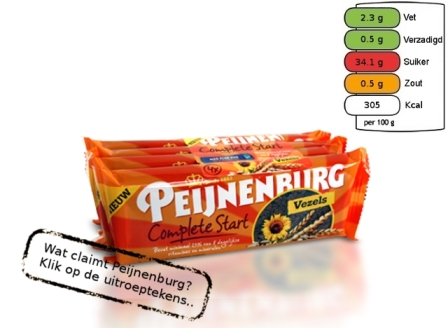 Volgens Foodwatch bevat 'Complete Start Vezels' van Peijnenburg helemaal niet zoveel vezel als het concern op de verpakking beweert. Zo zit er in één plak geen 20% maar slechts 6,5% van de dagelijkse aanbevolen hoeveelheid vezel. Peijnenburg ontkent de aantijging.
