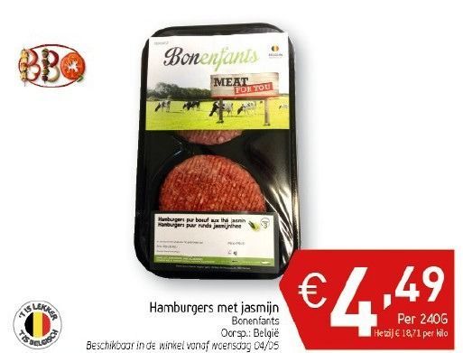 Hypermarkten Carrefour en Carrefour Market hebben sinds kort een vernieuwend vleesgamma met maar liefst 30% groenten in het winkelschap, onder de merknaam Bonenfants. Een primeur! De magere vleesproducten bevatten bovendien minder dan 1% zout en bevatten geen additieven en allergenen.