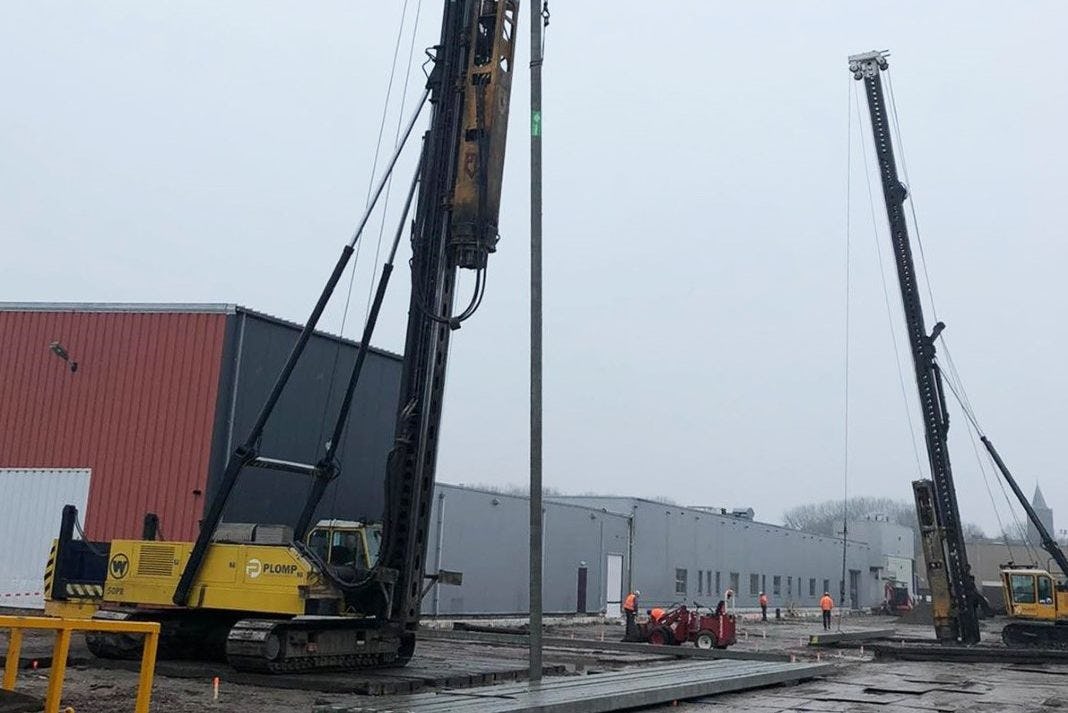 In Edam is de eerste paal geslagen van het nieuwe kantoor en de nieuwe productiehal van Royal Smilde Bakery. Bouwbedrijf Aan de Stegge Twello bouwt het nieuwe bedrijfsgebouw.