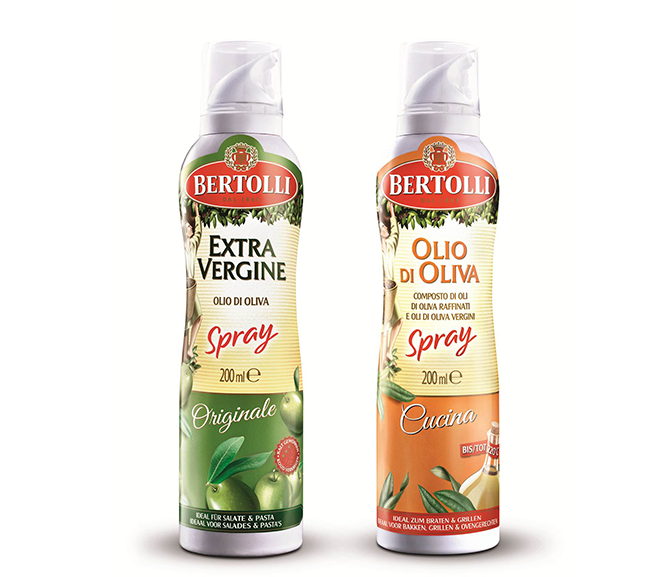 Bertoli komt met olijfolie in sprayvorm. Dit moet ervoor zorgen dat de olie gelijkmatig uit het flesje komt.